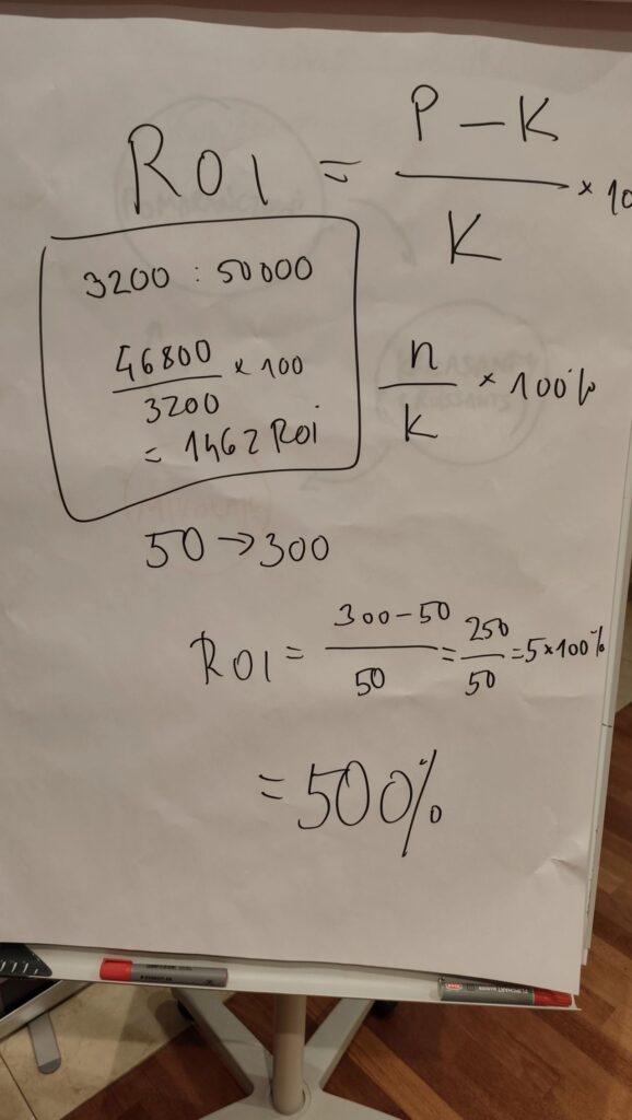 Druga część dnia upłynęła nam na ćwiczeniach i planowaniu kampanii. Uczyliśmy się m.in. obliczać ROI, czyli zwrot z inwestycji. 📉📈↩️